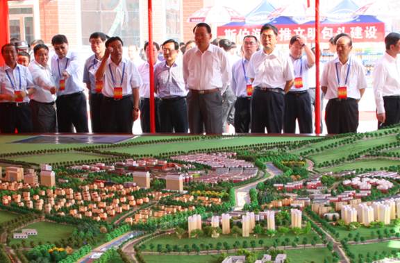 (参会领导们参观石拐新区沙盘模型)