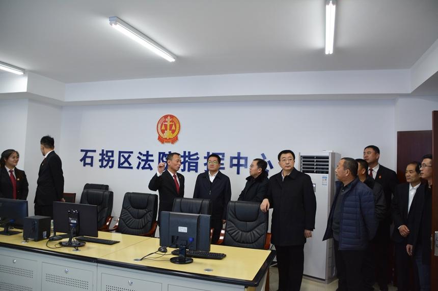 范俊峰代院长考察了石拐区法院诉讼服务中心、执行指挥中心、科技法庭、法院文化展厅。
